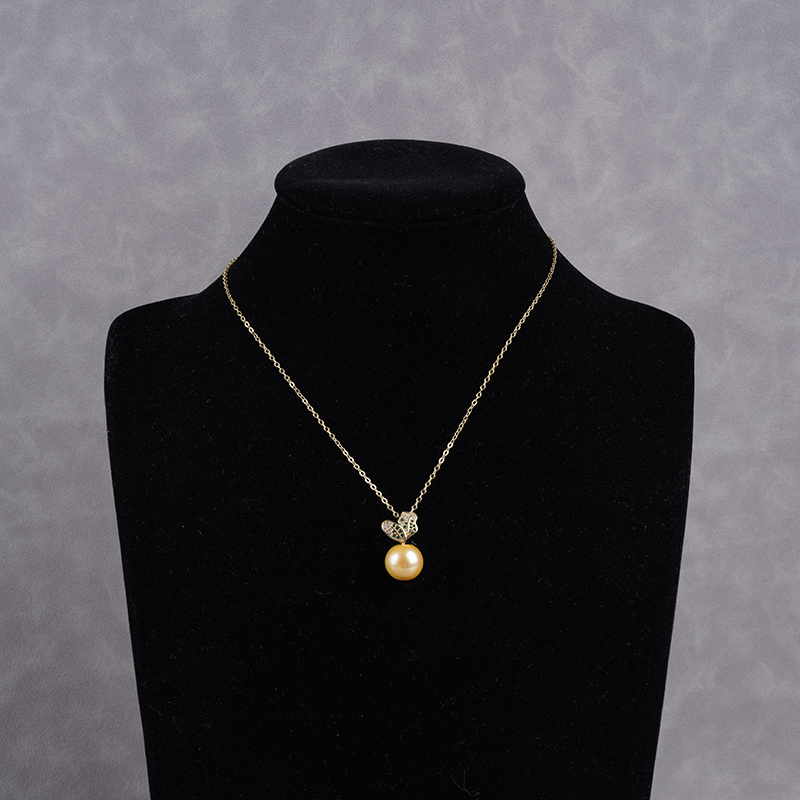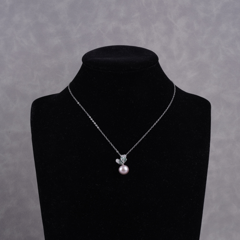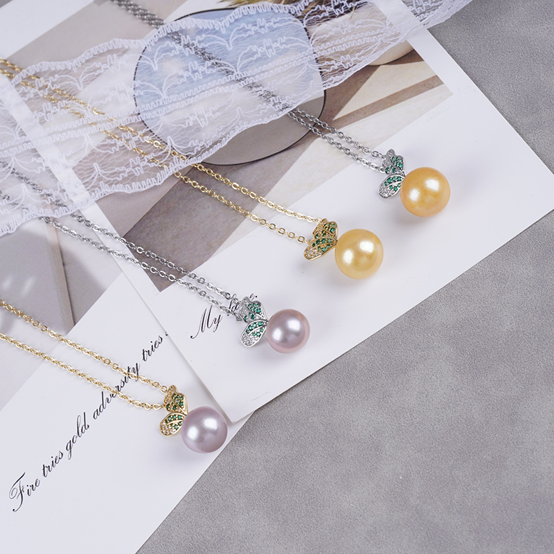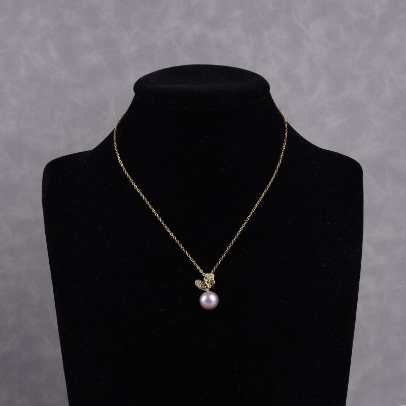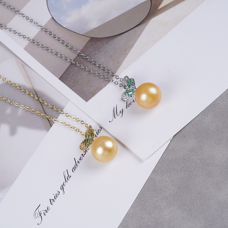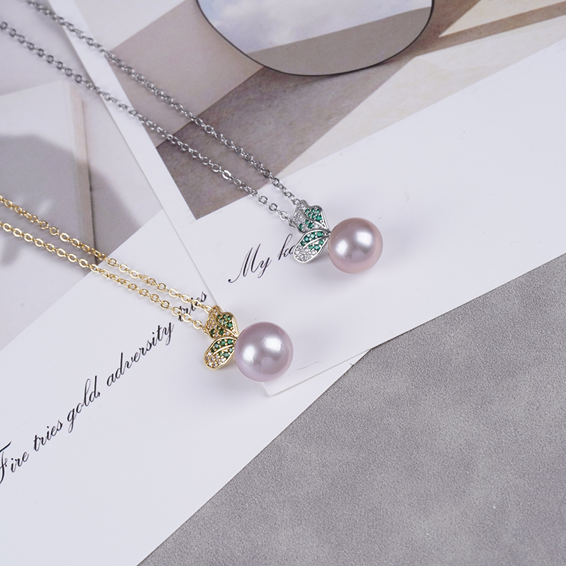 パールネックレス カスタム キャロットリーフ ラウンド エジソンパールネックレス 多機能 グリーンジルコニウムリーフ インライネックレス