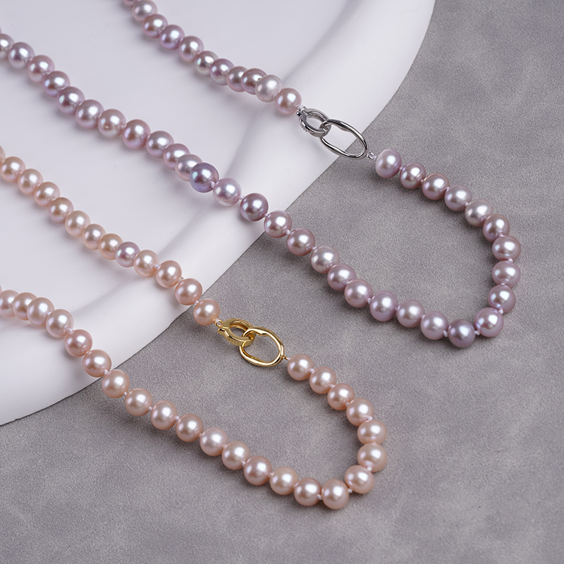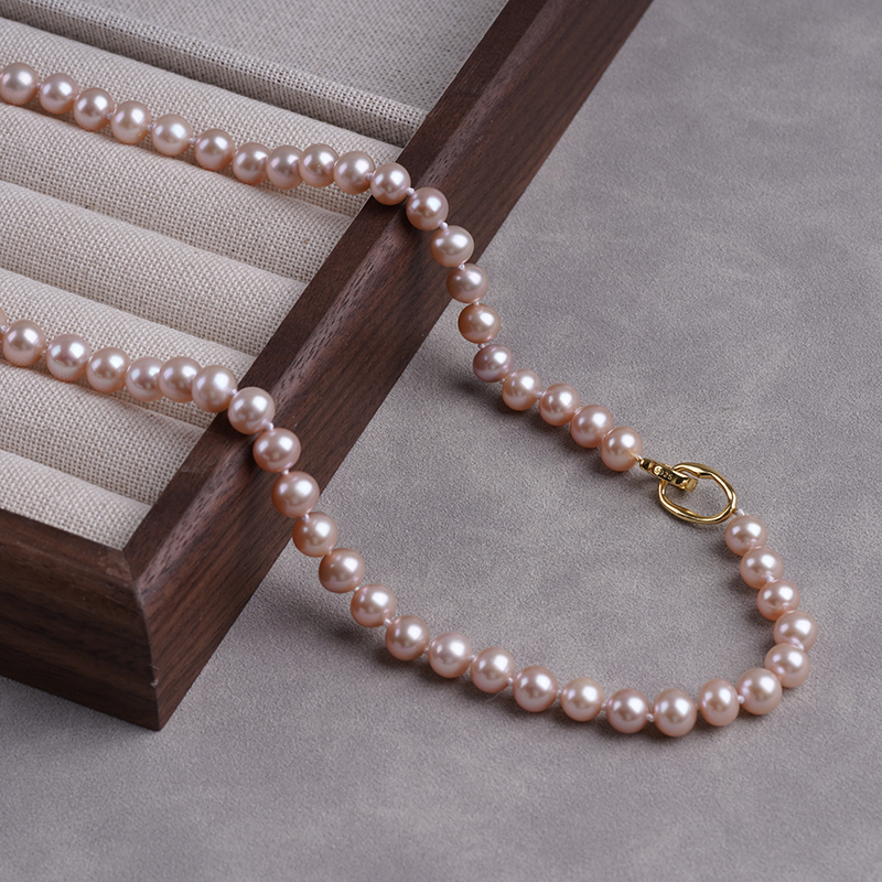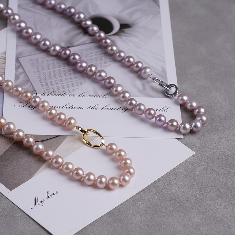 淡水真珠ネックレスサプライヤー 丸形 淡水真珠ネックレス S925シルバークラスプ