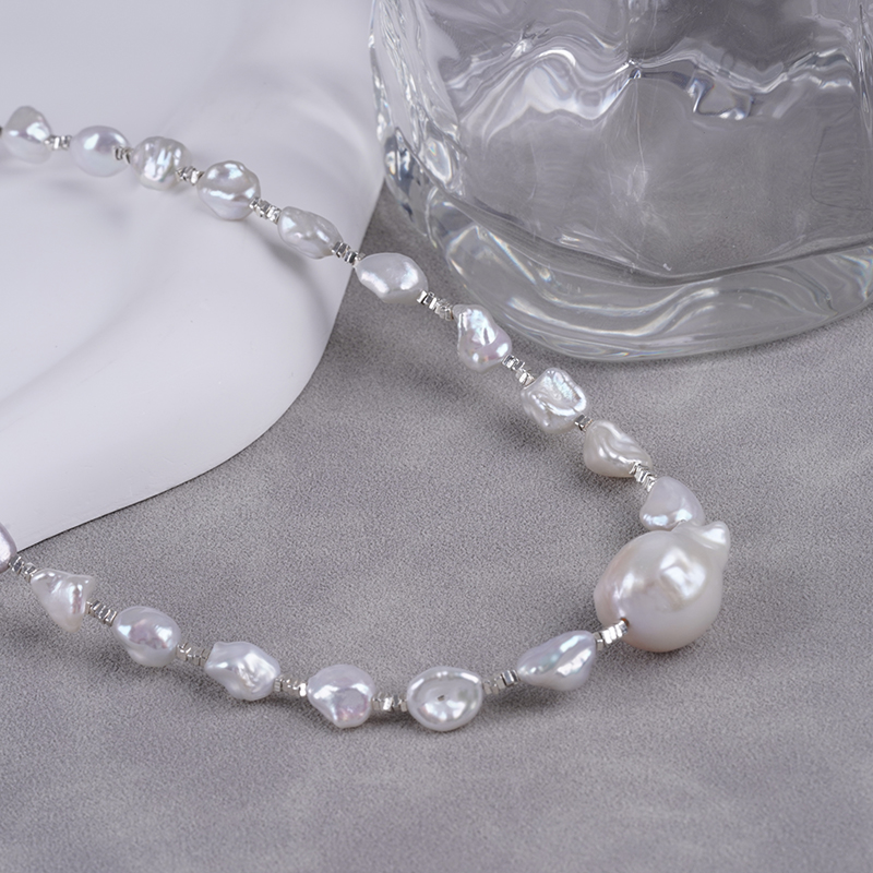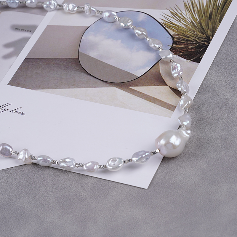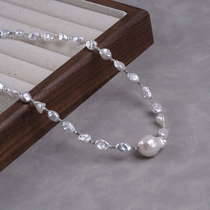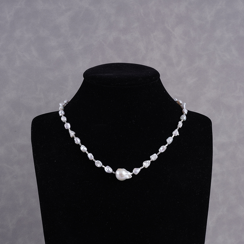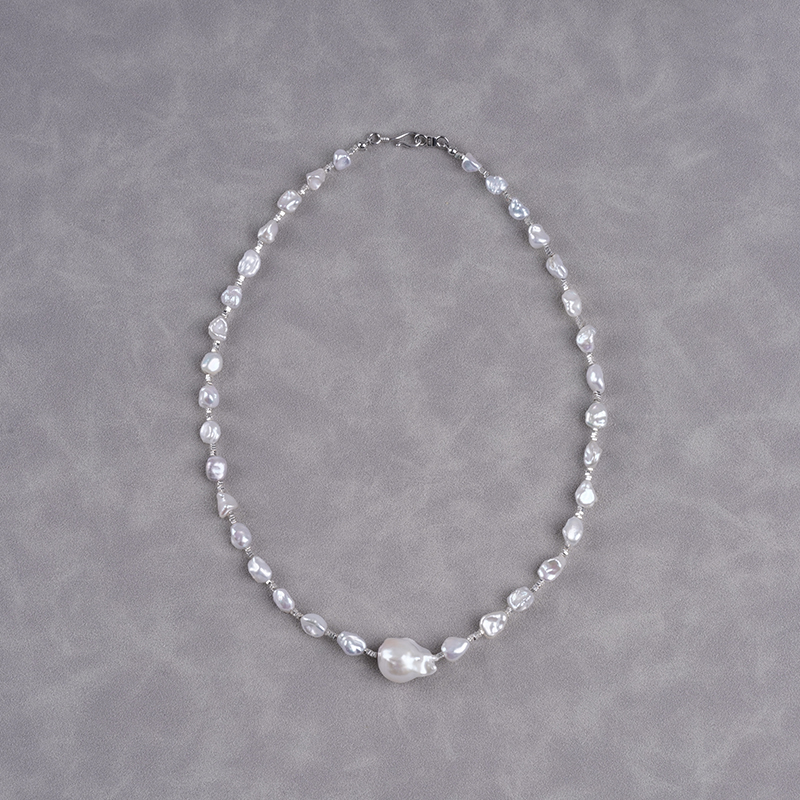 ナチュラルバロック不規則ペンダント真珠ネックレス ライトラグジュアリーデザイン ケシ真珠 ネックチェーン ロックボーンチェーン