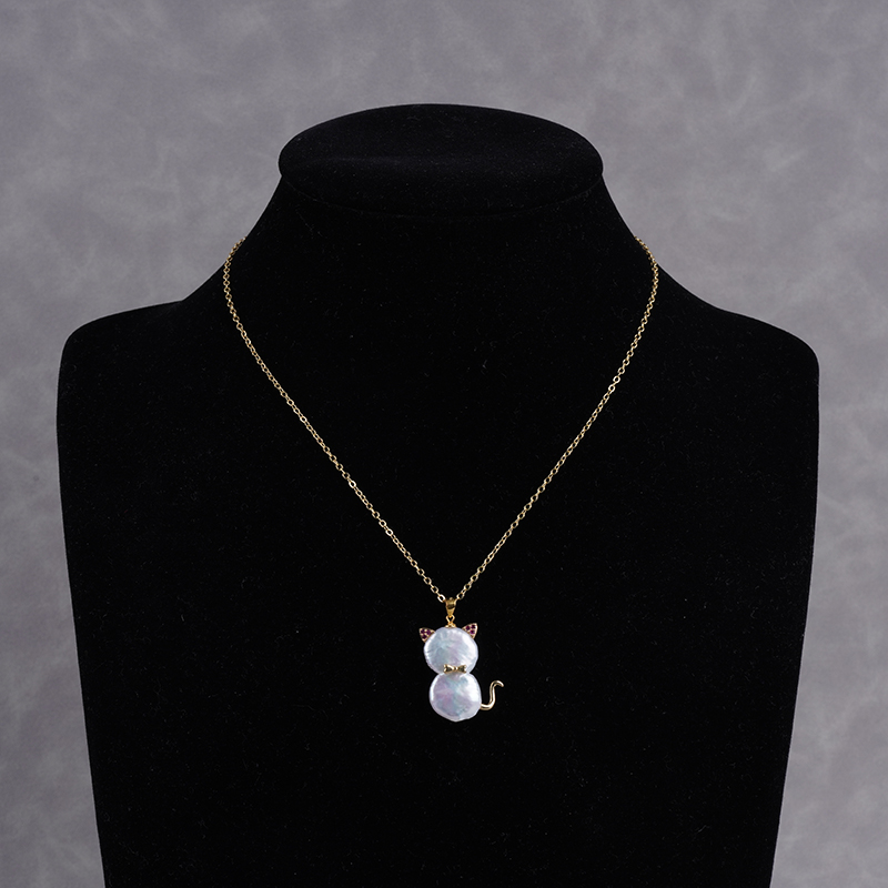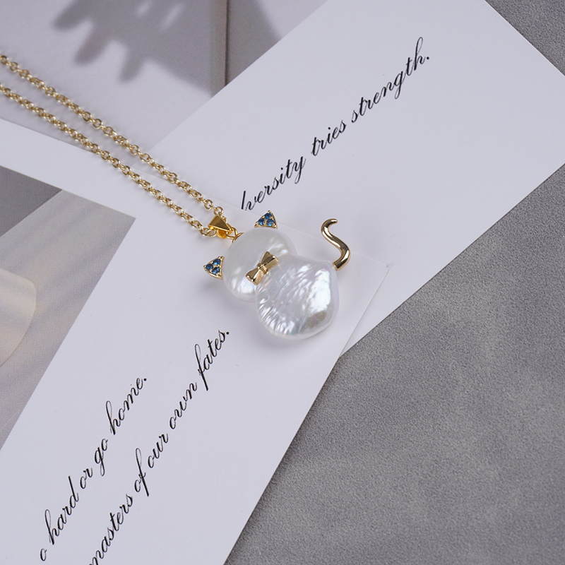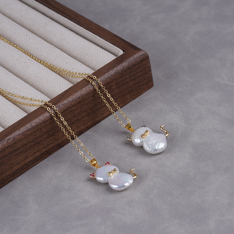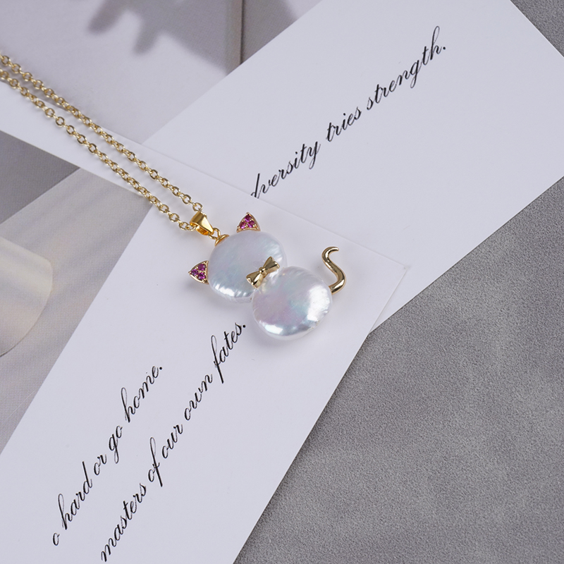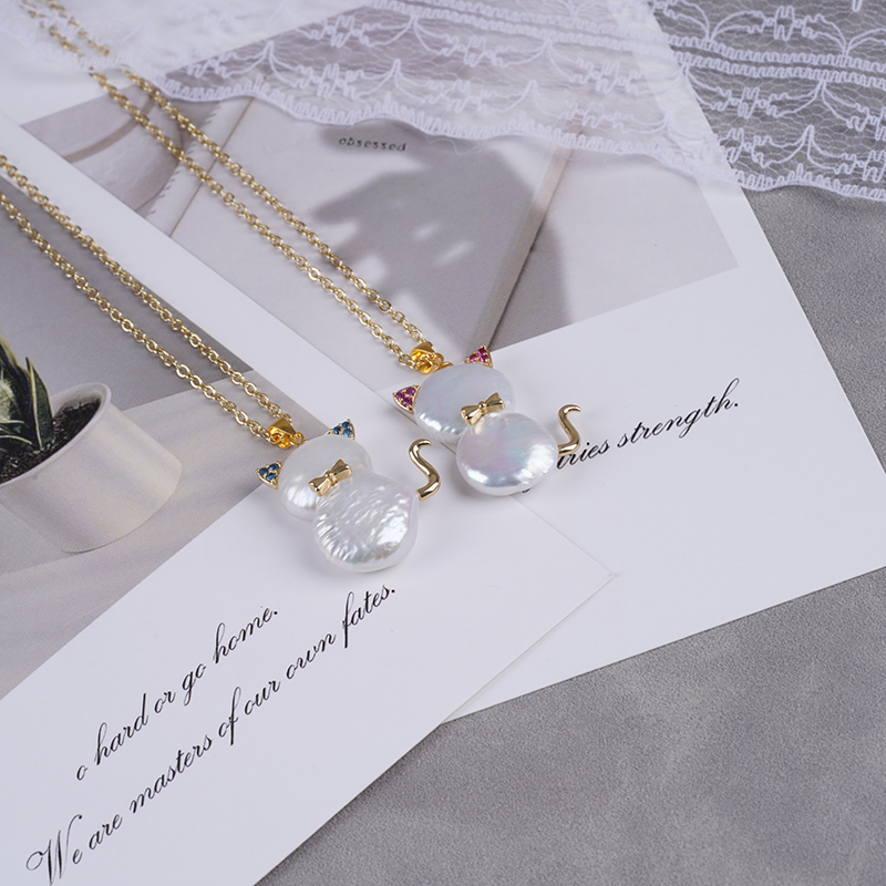 淡水真珠ネックレスサプライ ユニークなデザイン 可愛い猫のデザイン 淡水真珠ペンダントネックレス
